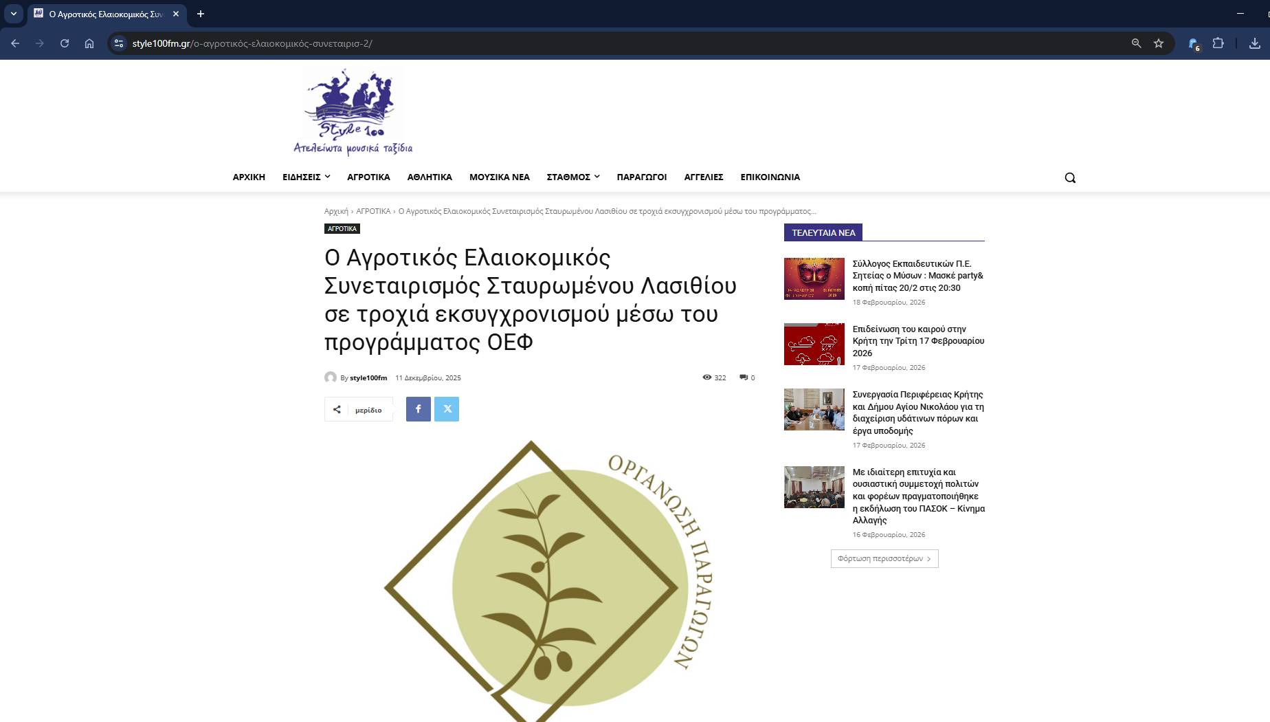 Άρθρο με τίτλο: Ο Αγροτικός Ελαιοκομικός Συνεταιρισμός Σταυρωμένου Λασιθίου σε τροχιά εκσυγχρονισμού μέσω του προγράμματος ΟΕΦ